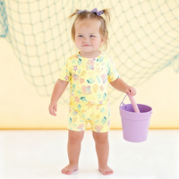 OEKO TEX OEM مخصصة قصيرة الأكمام الفتيات ملابس السباحة الصيفية قطعة واحدة الأطفال الصغار سحاب ارتداءها ثوب السباحة للأطفال